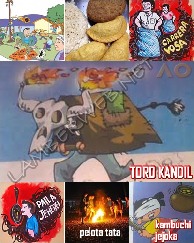- Pelota tatá: Es un juego que consiste en pasarse una pelota encendida en llamas. Los participantes deben tener habilidad para no quemarse.